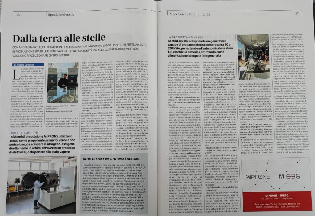 MIEEG, the “twin” start-up of MIPRONS, is pursuing the goal of overcoming the limits of batteries, fuel cells and classic renewable energy systems, offering an innovative solution for the automotive, boating, drones and housing sectors.